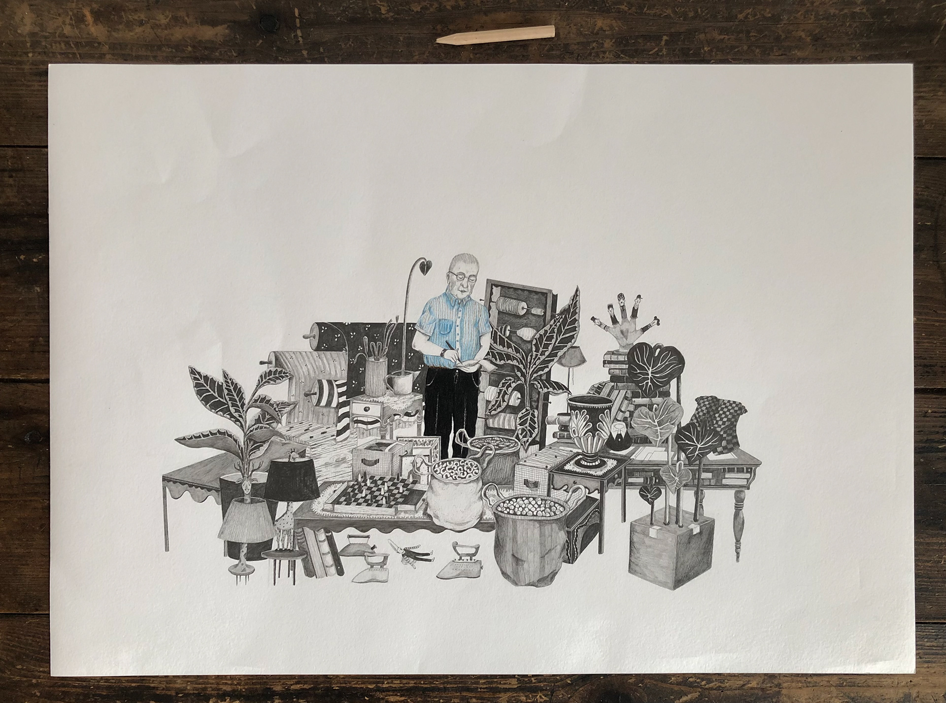 Projeto pessoal | Bahig é uma série de desenhos em grafite sobre papel que fez parte do meu projeto de mestrado na University of the Arts London. Ela ilustra meu bisavô Bahig e a loja de variedades onde ele trabalhou por quase 80 anos.