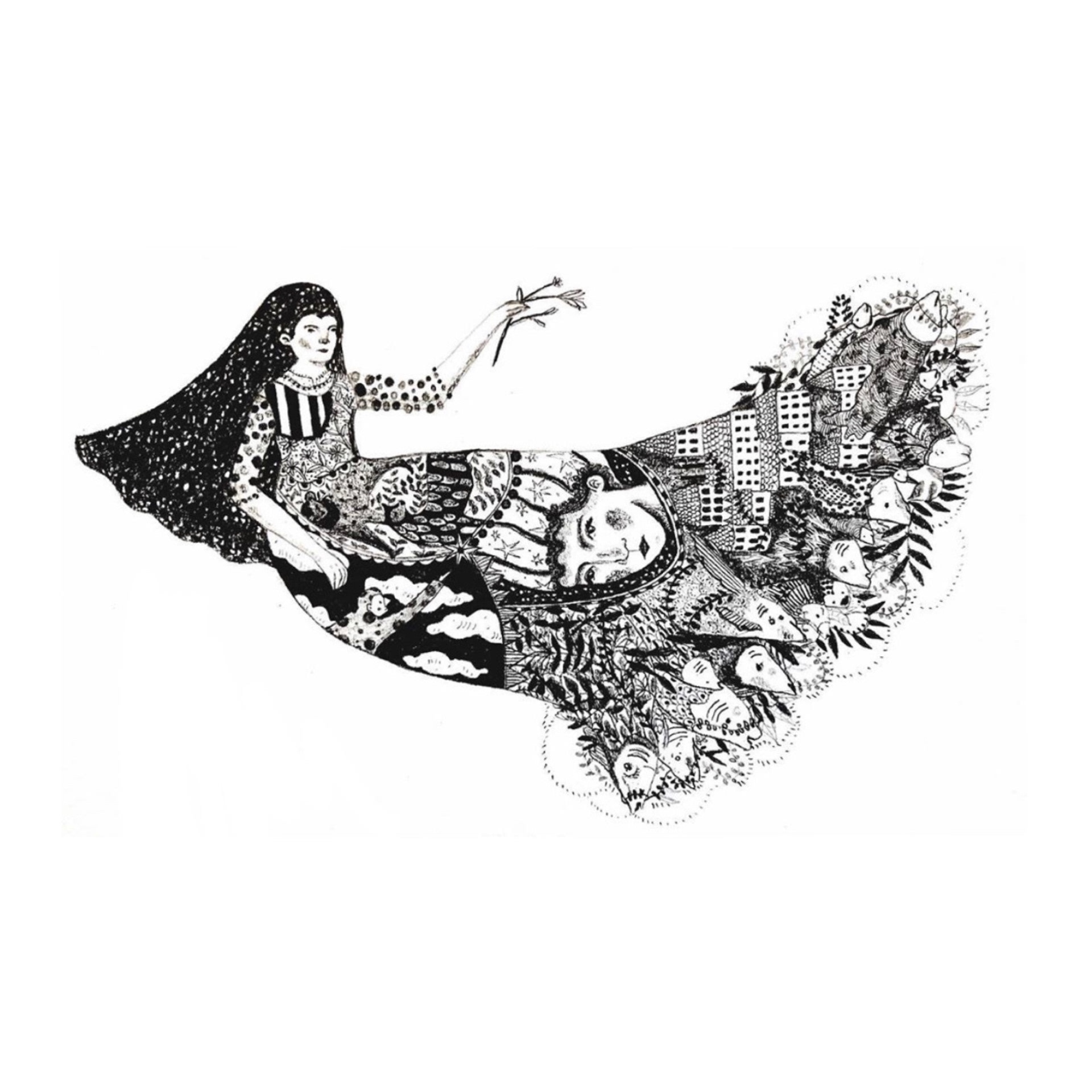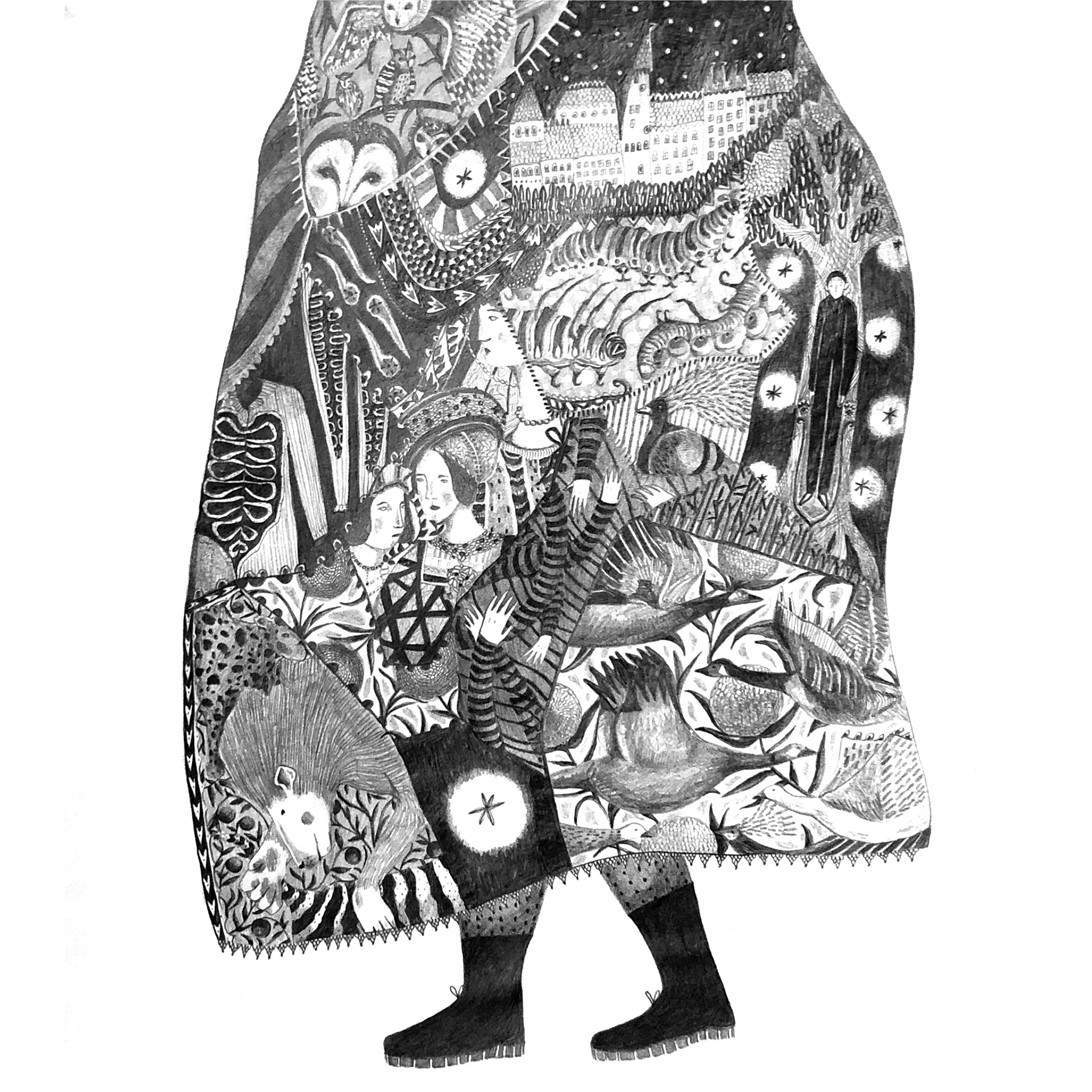 Projeto Pessoal | Dois desenhos em grafite sobre papel explorando a ideia de um mundo da imaginação que é contido e representado sob os limites das roupas.